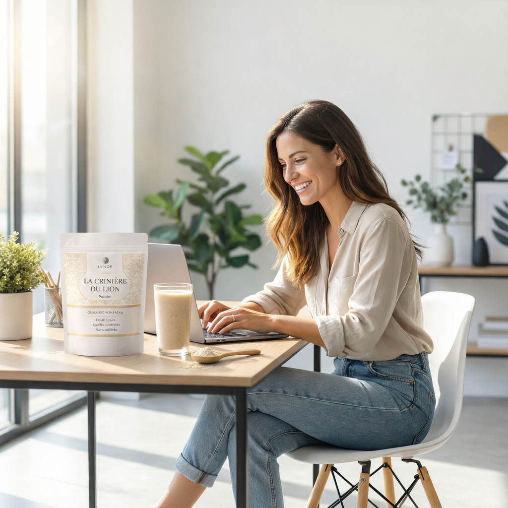 Notre marque est née d’une conviction simple : la clarté mentale est la base de la performance quotidienne.Nous développons des formulations naturelles à base de Lion’s Mane (Hericium erinaceus), un champignon reconnu pour son intérêt dans le soutien des fonctions cognitives, de la concentration et de la lucidité mentale.Nos formules s’inscrivent dans une approche moderne du bien-être mental, axée sur la qualité, la transparence et l’équilibre, pour accompagner le focus, la stabilité mentale et les performances intellectuelles, naturellement.